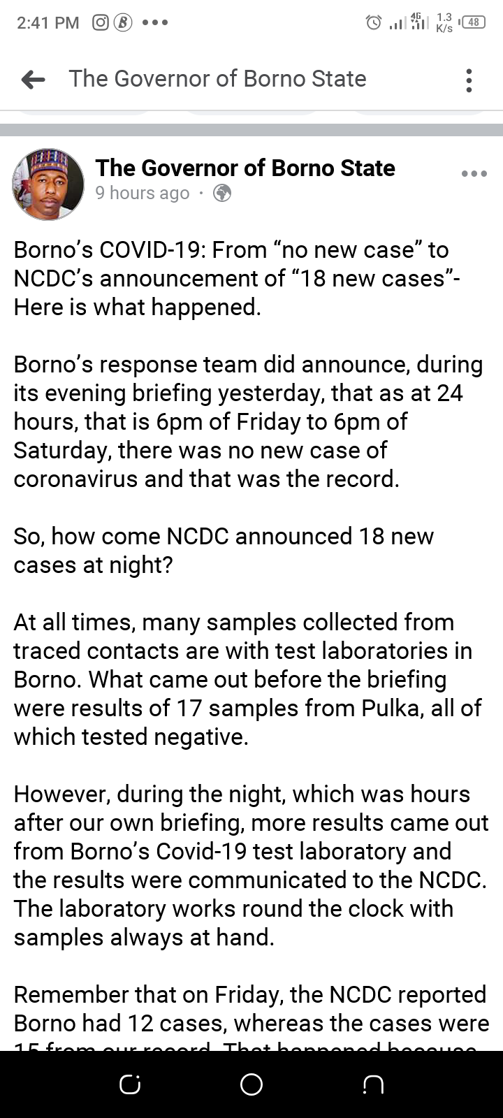 The Borno State government said that the Borno state response team said that from Friday 6 pm till Saturday noon there had been no cases of Coronavirus in the state. How comes NCDC announced 18 new cases at night?
