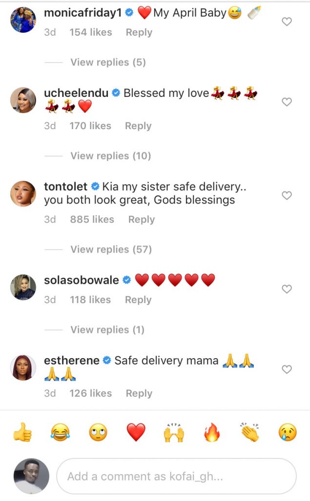 We also know that she is currently in the United States of America with her family just so she can put to bed her unborn child. After sharing a picture of herself just to prove that she hasn’t given birth, her colleague celebrities including the likes of Tonto Dikeh. Junior Pope, Toyin Abrahim and quiet a number of others decided to wish her well after realizing her time is due.