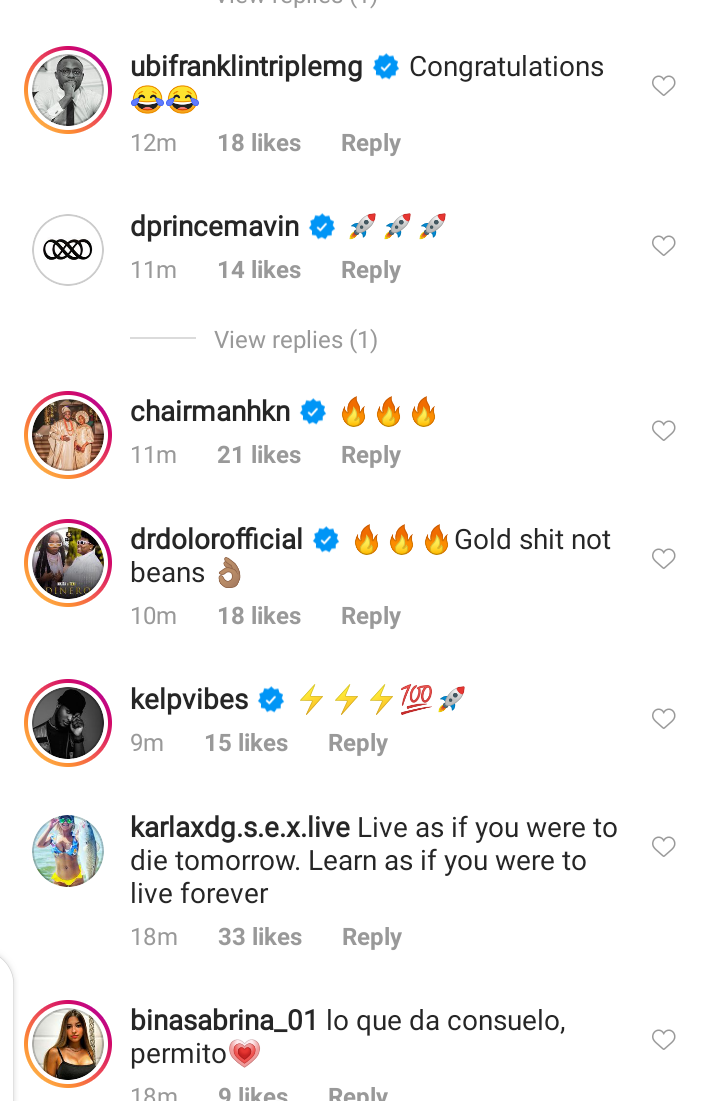 His page was stormed with congratulations and words of encouragement few minutes after the super star made this post by his fans and other celebrities like Kcee, Dr Dolor, Brod Shaggi, Peruzzi, Zlatan Ibile and so many others.