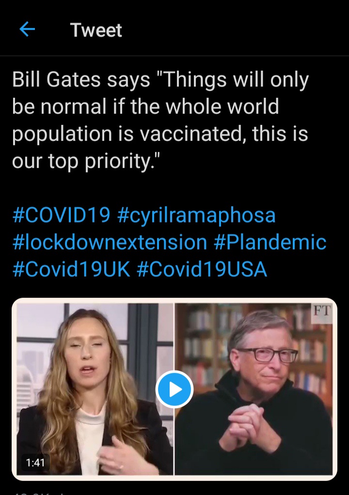 But the whole world is still not falling for it, saying they are aware of Bill Gates' tricks of trying to reduce the population.
