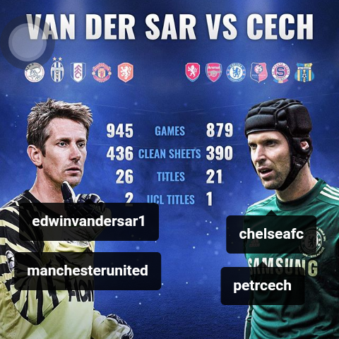 This is quite an interesting comparison. Above is how the Chelsea legendary goal keeper Peter Cech is Being compared to the Manchester United Legendary goalie Van Der Sar.