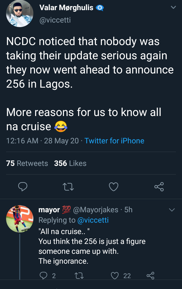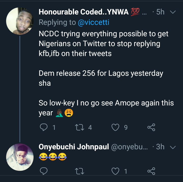 Due to the adaptability Nigerians have become whenever the NCDC report pops up every night as they all try to gain more followers among themselves than being more interested in the number of cases being recorded. Many assume that the recent high number of cases in Lagos was being inflated so to get people's full attention on the what's going on now in Nigeria.