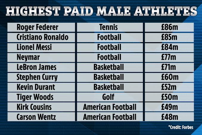 Annual Forbes list released on Friday reveals that tennis legend, Roger Federer is the highest-paid sportsman in the world as the pandemic knocks Lionel Messi out of the first position.