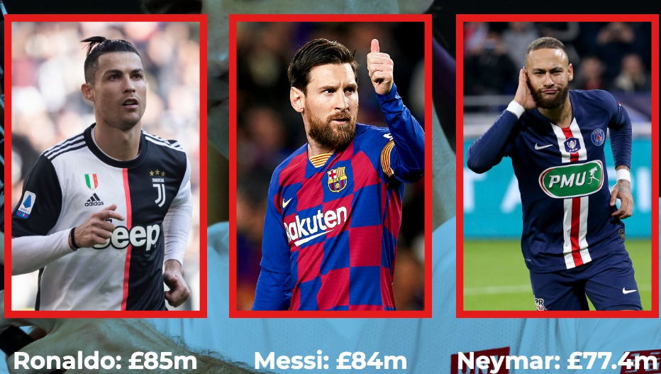 Cristiano Ronaldo is the highest-paid footballer on the list. He earned €85.3 million in the last 12 months.