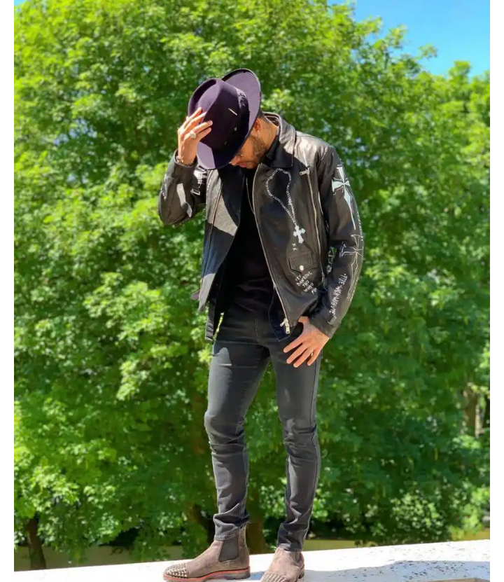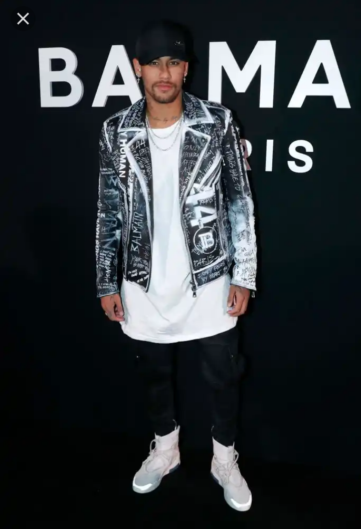 Neymar Jr a PSG player has no fear of dressing like millennial. He loves dressing and he is deep into street dressing. looking at him, in this picture he looks like Chris Brown he loves rocking leather jackets and sneakers he dresses like a rockstar.