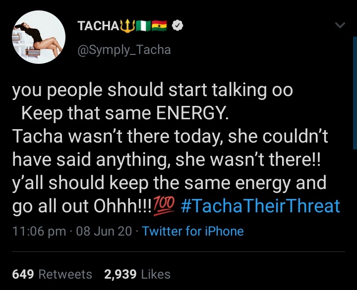See more of Tacha's tweet below...