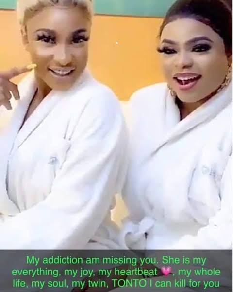 8. Bobrisky effortlessly praises Tonto Dikeh on social media. If not for thanking her for loving him the way he is, then its either for having his back, inviting him to her home, or making time to hang out together.