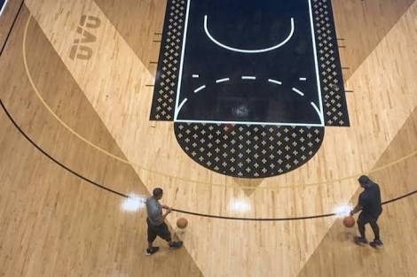 The official NBA-size court is painted with details inspired by Drake’s lifestyle brand, October’s Very Own.