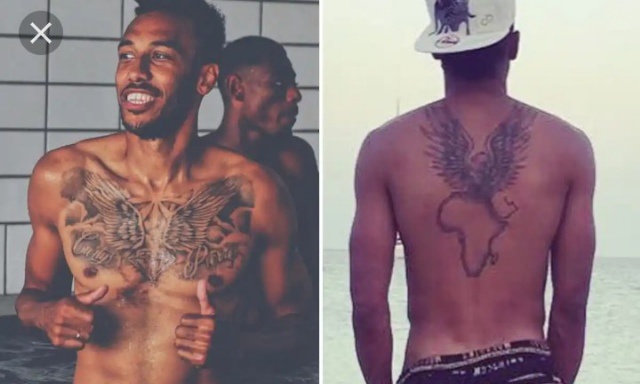He's got a couple of inscriptions on his body, including Dragon Ball Z, A giant map of Africa on his back and he also inked 'Crespo for life' on his arm.