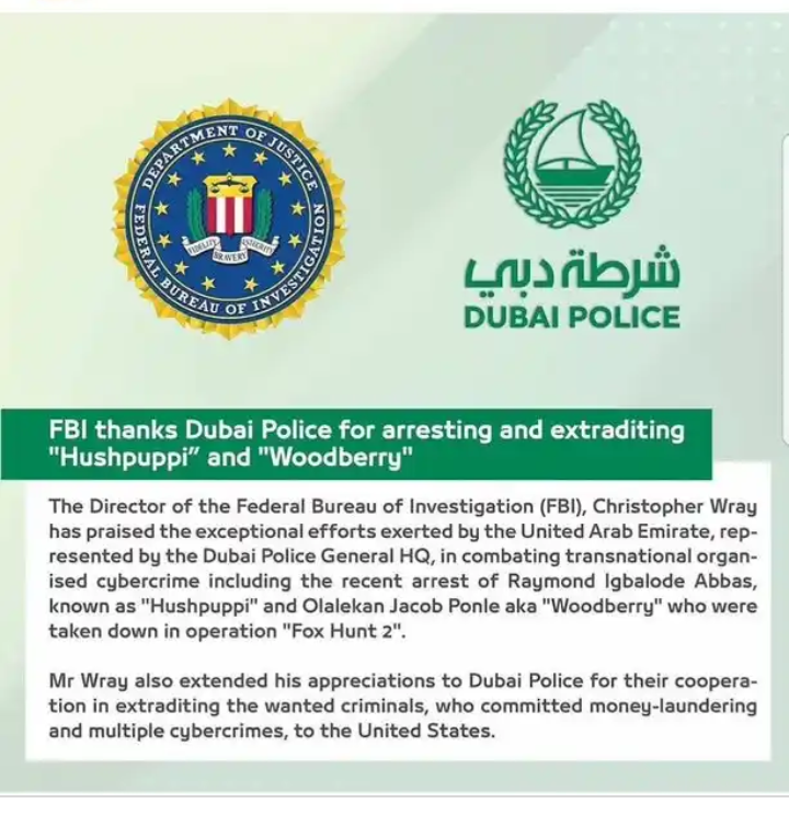 This was made known on 2nd July 2020 after Christopher Wray, FBI Director, who took to social media platform to thank Dubai Police for the exceptional efforts in fighting organized cyber crimes and arresting Ramon Igbalode Abbas and Olalekan Jacob Ponle, wry wrote on his Twitter handle.